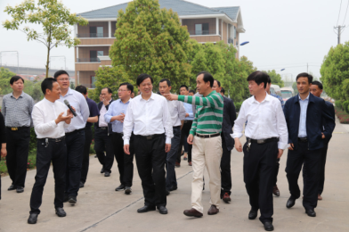 Ma Yanzhou (fourth from right), secretary of the CPC Huangmei County Party Committee, visited the company.
