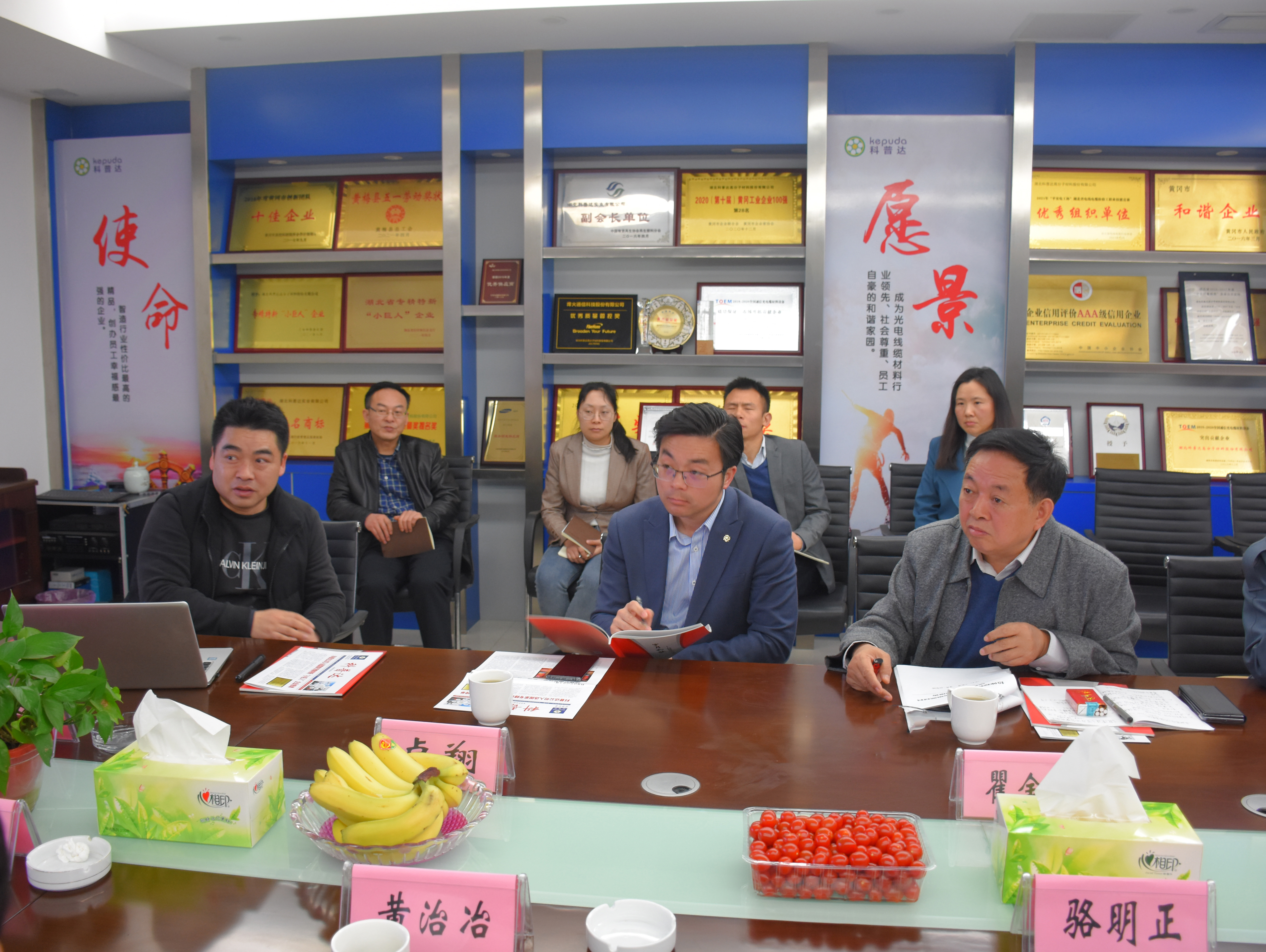 發(fā)布日期:2022/4/12 15:26:02????瀏覽次數(shù):春暖花開一片生機勃勃,4月4日上午中國工程院院士瞿金平以及華中科技大學教授專家等一行蒞臨公司指導交流。黃岡市科協(xié)主席駱明正、黃梅縣委副書記周明、黃梅縣委常委小池濱江新區(qū)黨工委書記黃治冶、縣委組織部副部長王萬舟、黃梅縣科協(xié)主席李小騫等領導參加活動。公司董事長柯斌致歡迎詞,并詳細介紹了公司生產(chǎn)經(jīng)營及相關項目發(fā)展情況。