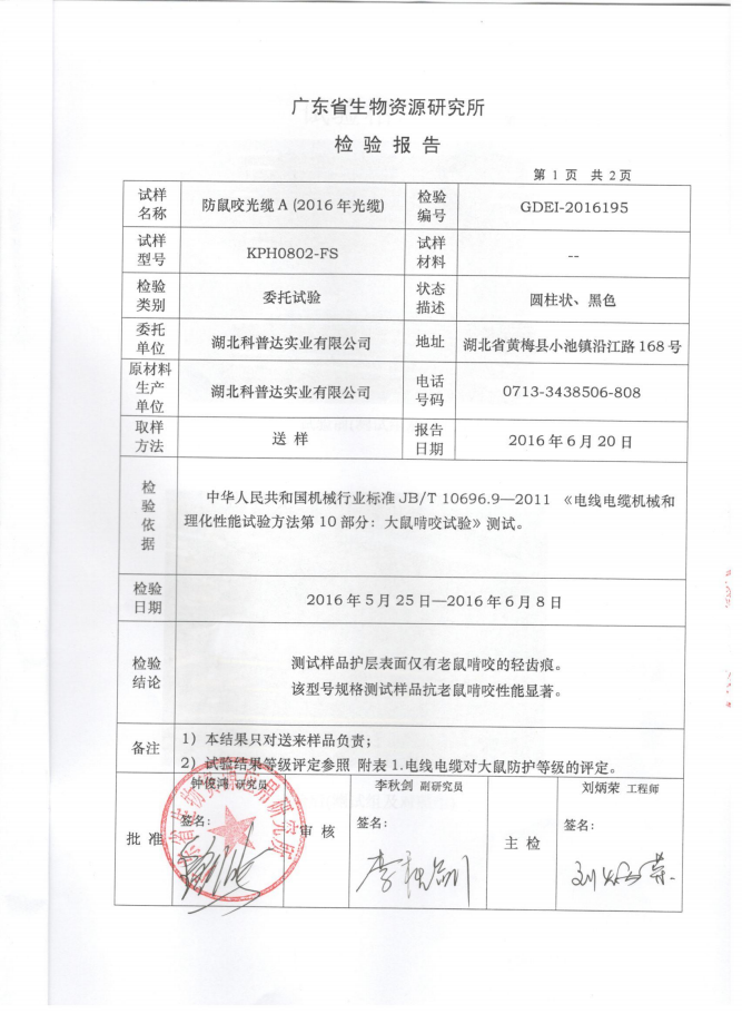 下一篇:科普達(dá)防鼠咬光纜檢測報(bào)告KPH0802-FS(B樣)
