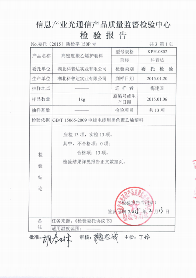 科普達(dá)產(chǎn)品主要有各種光纜護(hù)套料,榮獲湖北省名牌產(chǎn)品,守合同重信用企業(yè)。 榮獲多種國家資質(zhì)認(rèn)證包括:ISO9001質(zhì)量管理體系認(rèn)證、ISO14001環(huán)境管理體系及OHSAS18001職業(yè)健康安全管理體系認(rèn)證。...
